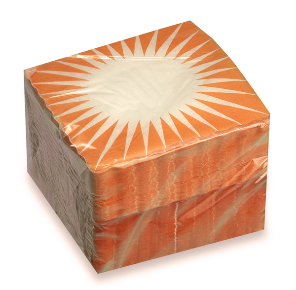 quadratisch, 16 × 16 cm, gezackter Rand, weiss, 20 g/m², Strahlen orange