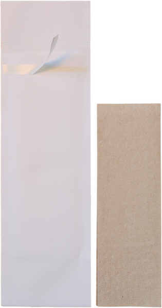 Papier, 8,5 × 25 cm, mit 23 × 39 cm Serviette, verschliessbar, weiss, mit naturfarbener Serviette