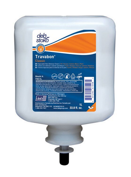 Travabon classic cream ist eine spezielle, nicht fettende, pigmenthaltige Hautschutzsalbe mit ausgezeichneter Schutzwirkung gegen wasserunlösliche Arbeitsstoffe.
