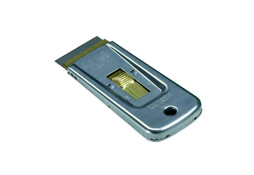Der Sicherheitsschaber ist ideal um Kleber und andere Verschmutzungen von Glasflächen zu entfernen.