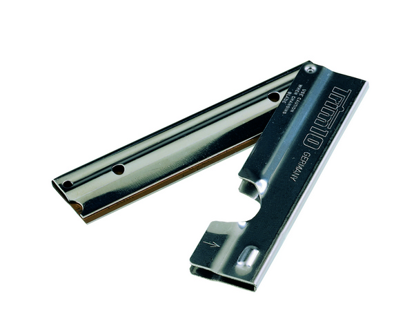 Die Glasschaber im Edelstahlhalter sind ideal um Kleber und andere Verschmutzungen von Glasflächen zu entfernen. Durch den Klappmechanismus wird eine erhöhte Sicherheit garantiert und die Klingen verrosten nicht.