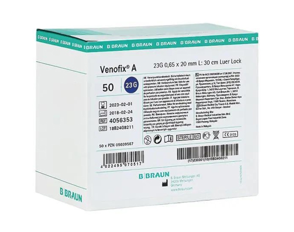 Sicherheits-Venenpunktionsbesteck zur kurzzeitigen Injektion, Infusion, Transfusion und Blutentnahme, blau 23g 0.65x 19mm