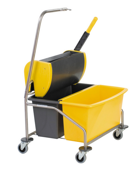 Edelstahlwagen, Presse mit arretierbarem Presshebel, 2 × 20-Liter-Wannen