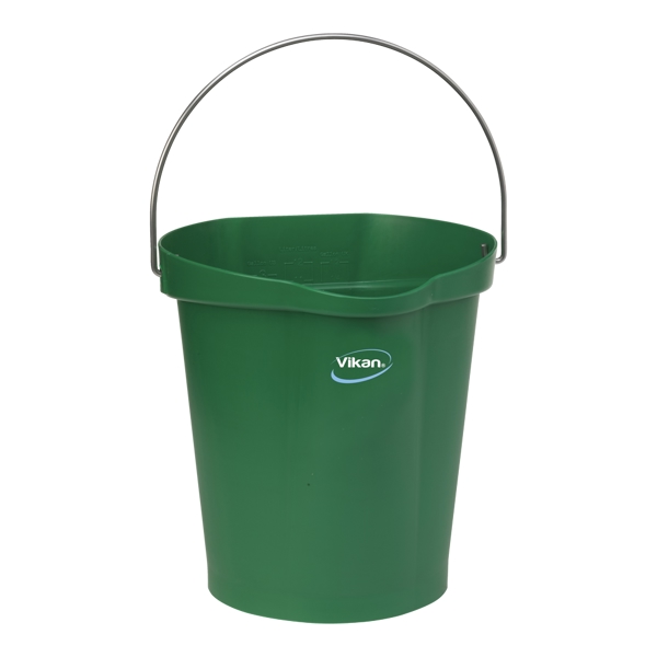 Der Eimer mit einem Henkel aus Edelstahl, enthält eine Messskala im Inneren und bleibt auch bei heissem Wasser stabil. Durch die Farbkodierung wird eine Kreuzkontamination verhindert. Der Eimer ist sehr langlebig und robust und trocknet schnell.