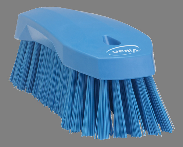 Die ergonomische Waschbürste eignet sich für die Reinigung von Tischen, Förderbändern, Schneidbrettern, Eimern und grosse Schalen sowie schwer erreichbaren Ecken. Die 33 mm langen, harten Borsten bestehen aus Polyester und sind auf einem Ende der Bürste mit noch härteren Filamenten ausgestattet, die es ermöglichen, hartnäckigen Schmutz zu entfernen.