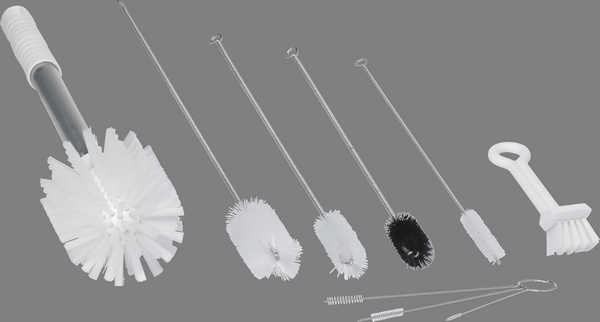 Das Bürstenset (für Softeismaschinen) besteht aus sechs verschieden grossen Bürsten und einer aus Stahl bestehenden Klammer. Die verschiedenen Bürsten bestehen aus Polyester und sorgen für eine effiziente und einfache Reinigung.