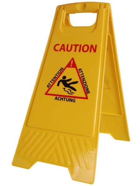 Warnschild Basic, in 4 verschiedenen Sprachen angeschrieben.