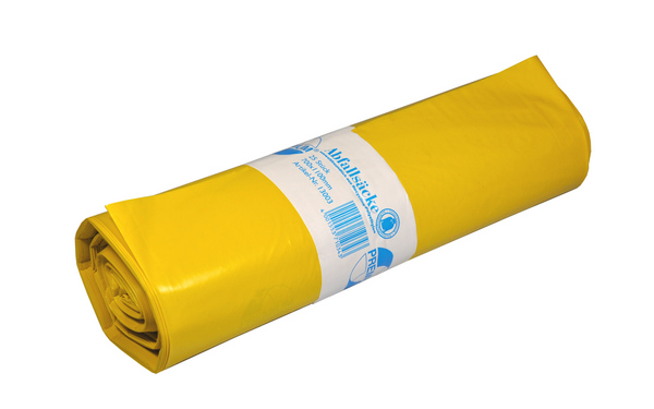 LD-PE, 700 × 1100 mm, 0,06 mm, Rolle à 25 Säcke, gelb