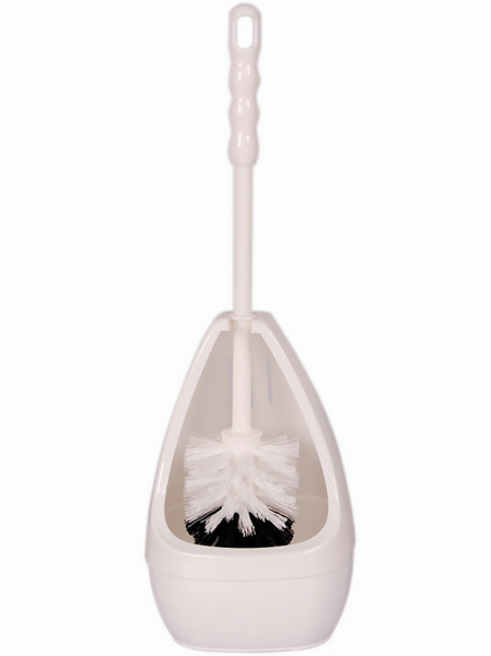 Die WC Garnitur besteht aus einem Besen mit Randreiniger und einem Besenhalter. Körper und Besatz sind weiss und aus PP.