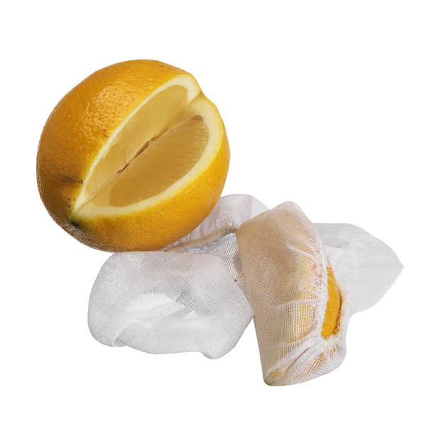 Das Zitronennetzchen aus Baumwolle vereinfacht das Mitführen von Zitronenschnitzen.